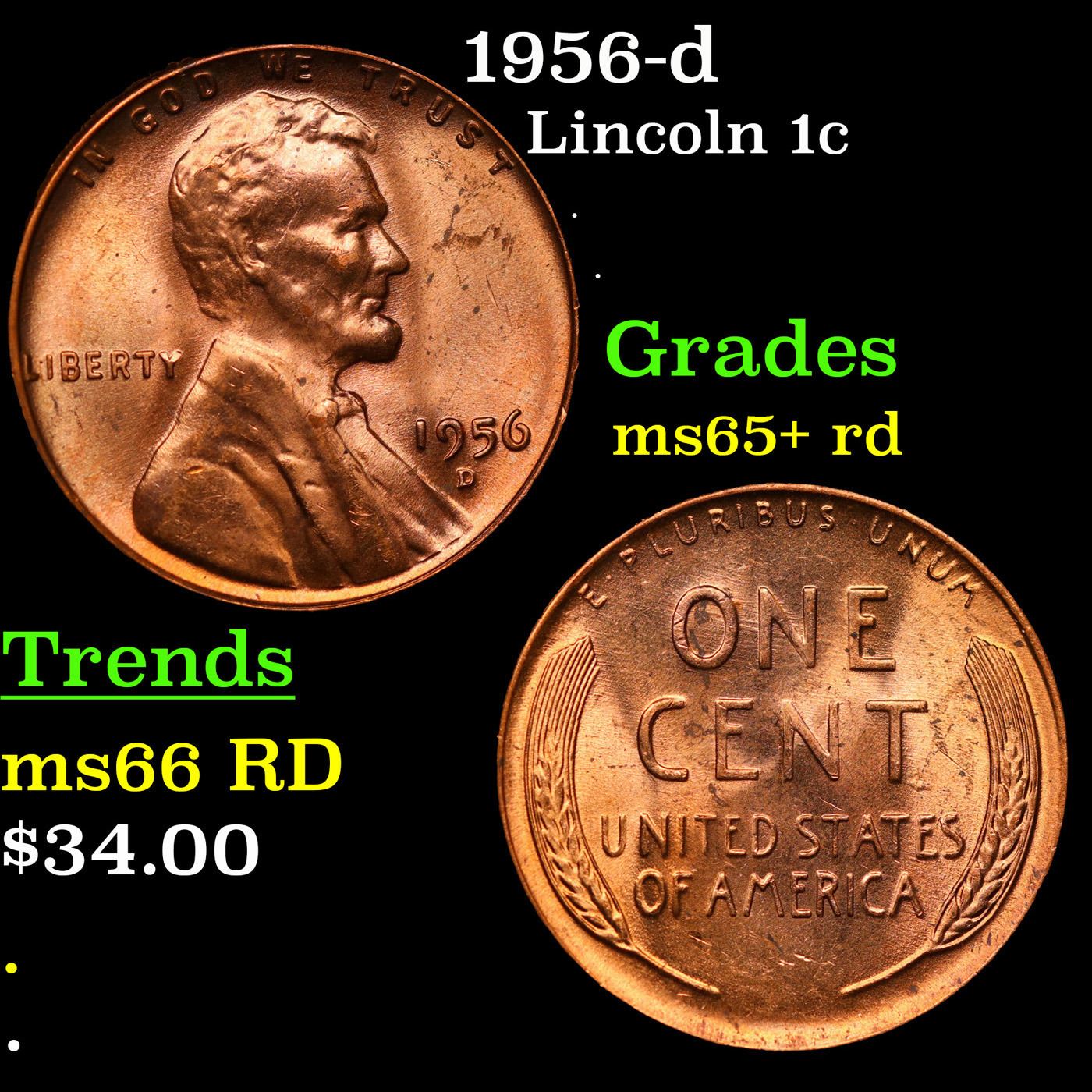 1956-d Lincoln Cent 1c Grades Gem+ Unc RD.