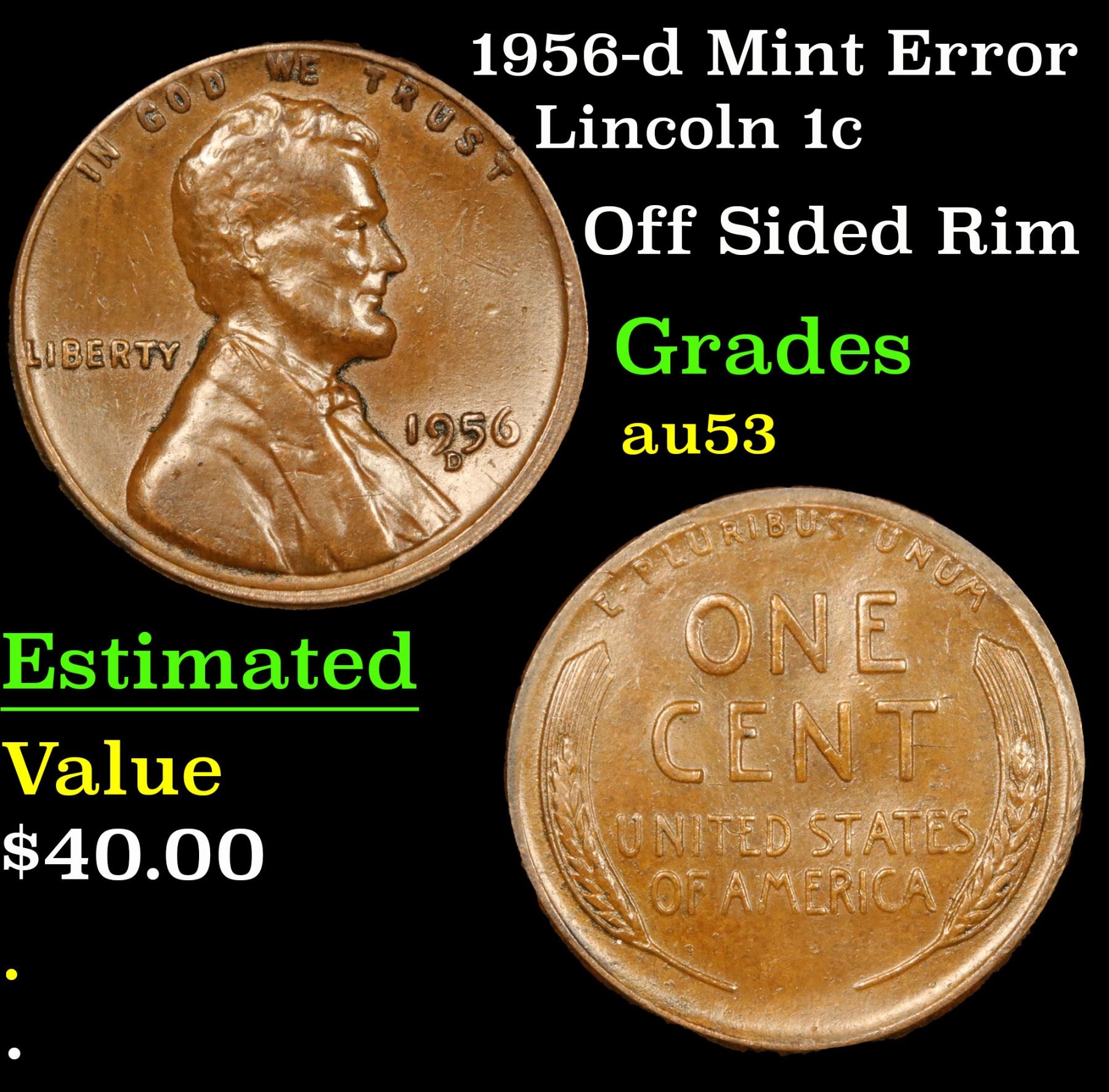 1956-d Mint Error Off Sided Rim . Lincoln Cent 1c Grades Select AU.