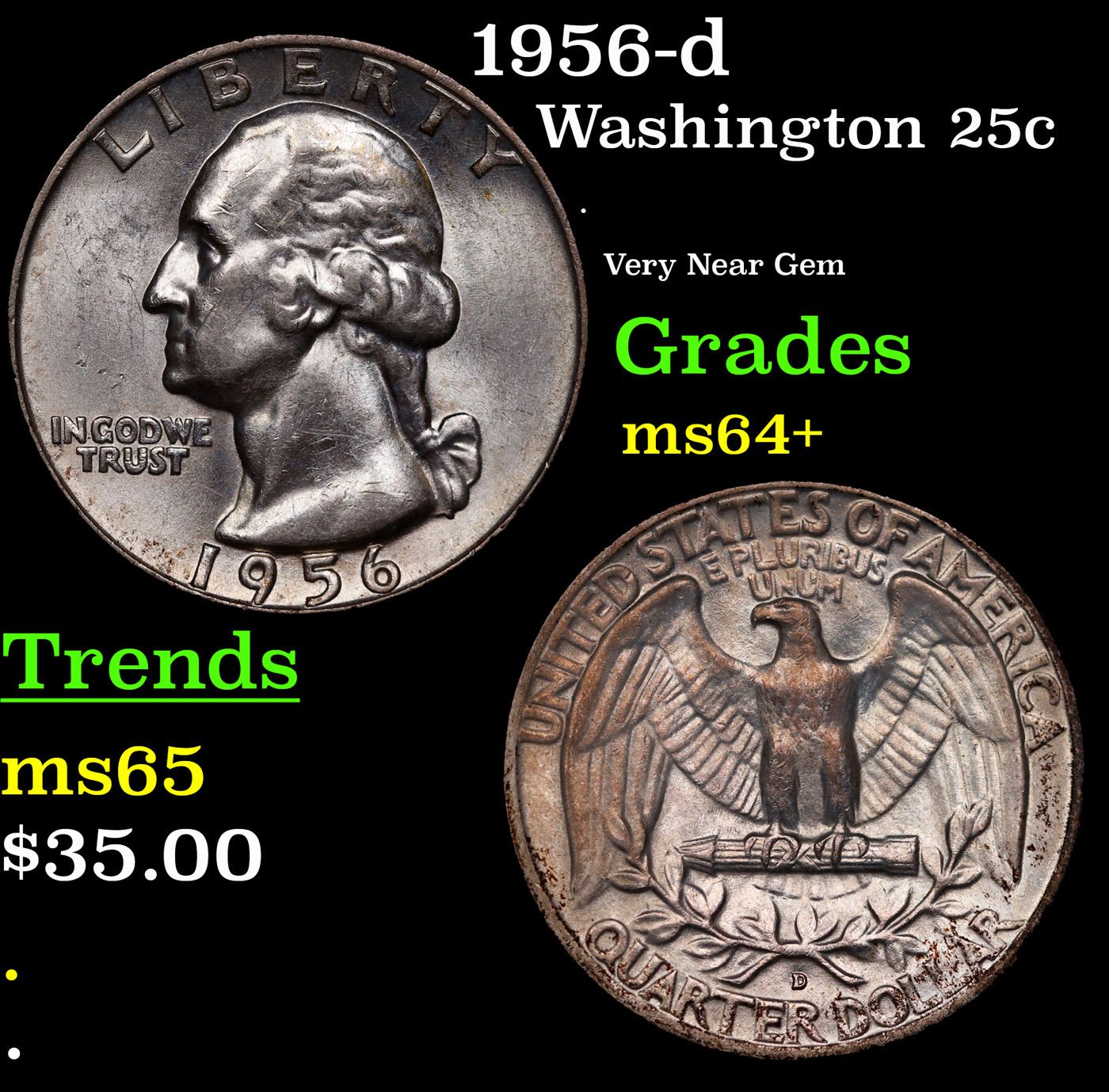 1956-d Washington Quarter 25c Grades Choice+ Unc.