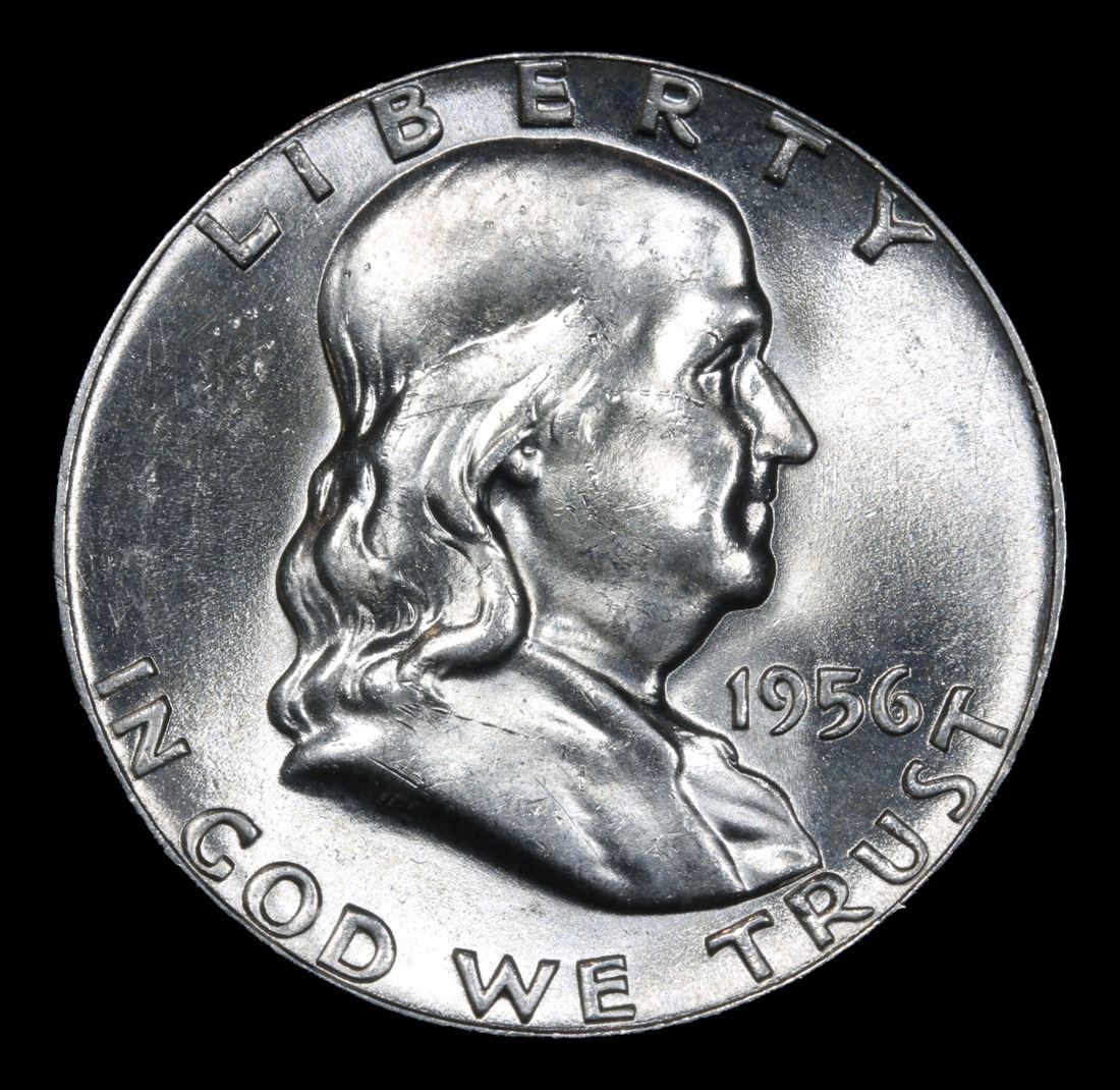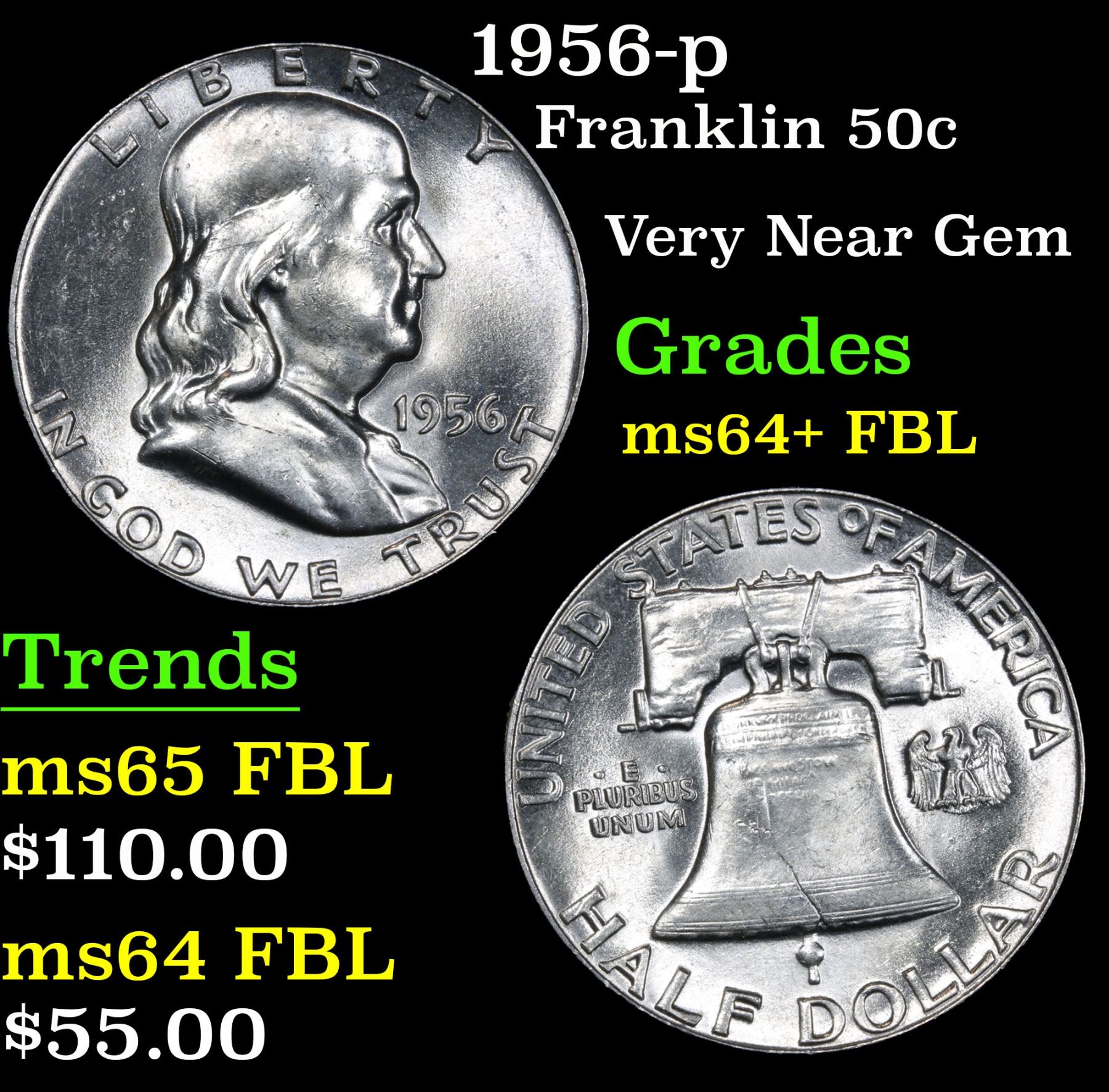1956-p Franklin Half Dollar 50c Grades Choice Unc+ FBL. Very Near Gem