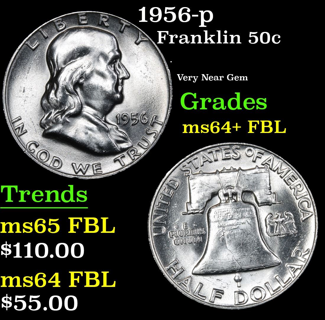 1956-p . Very Near Gem Franklin Half Dollar 50c Grades Choice Unc+ FBL.