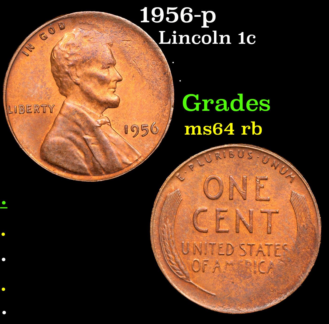 1956-p Lincoln Cent 1c Grades Choice Unc RB.