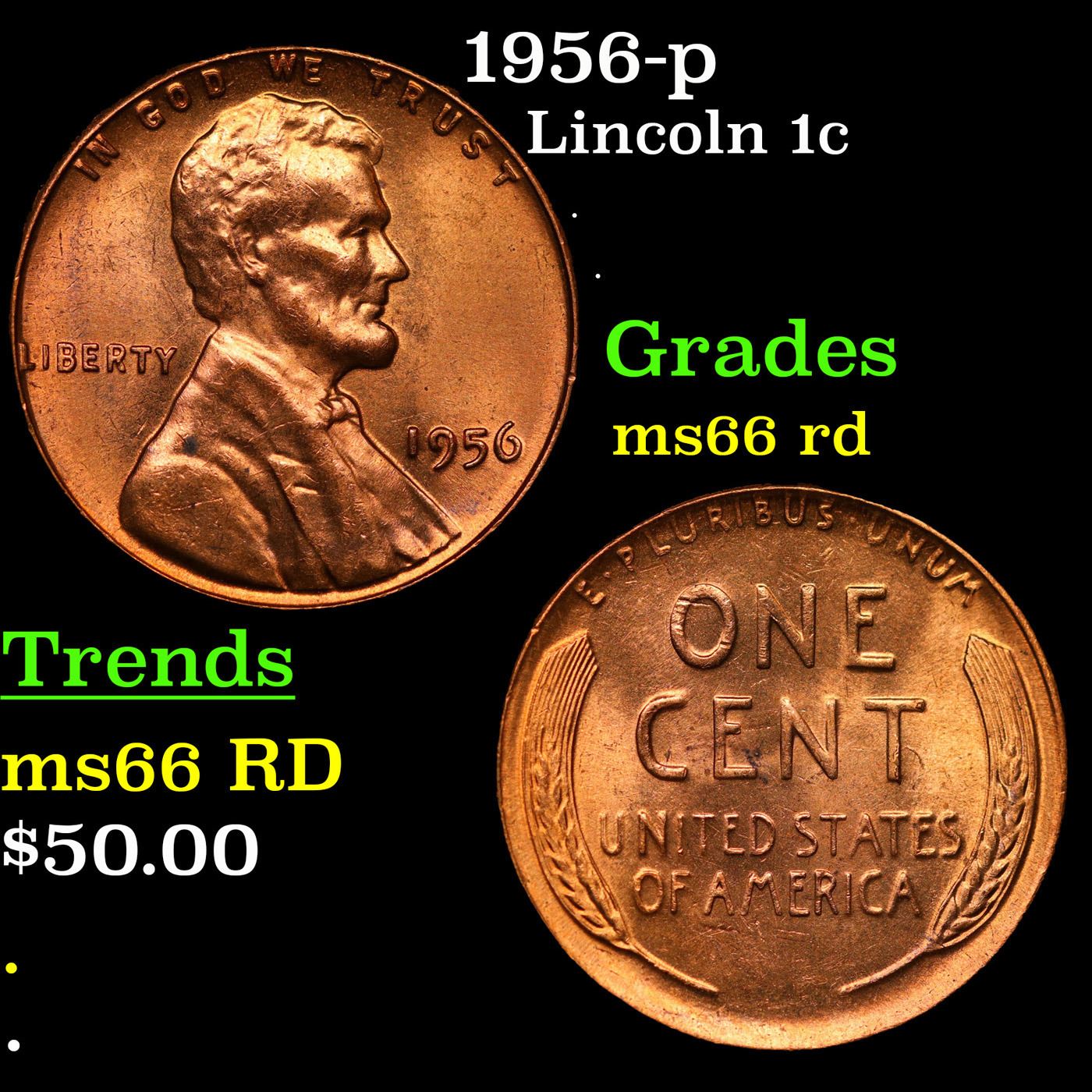 1956-p Lincoln Cent 1c Grades GEM+ Unc RD.