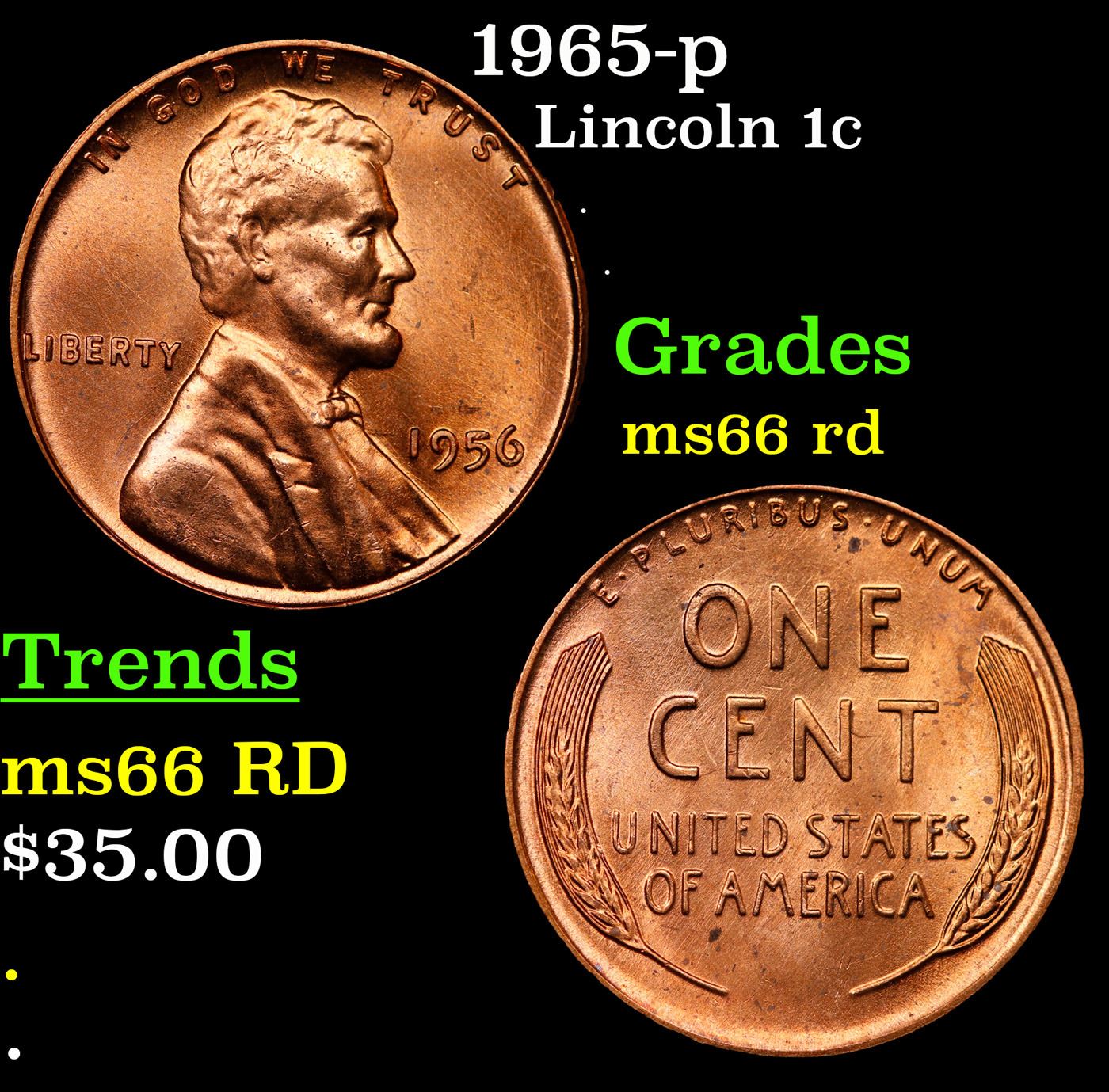 1956-p Lincoln Cent 1c Grades GEM+ Unc RD