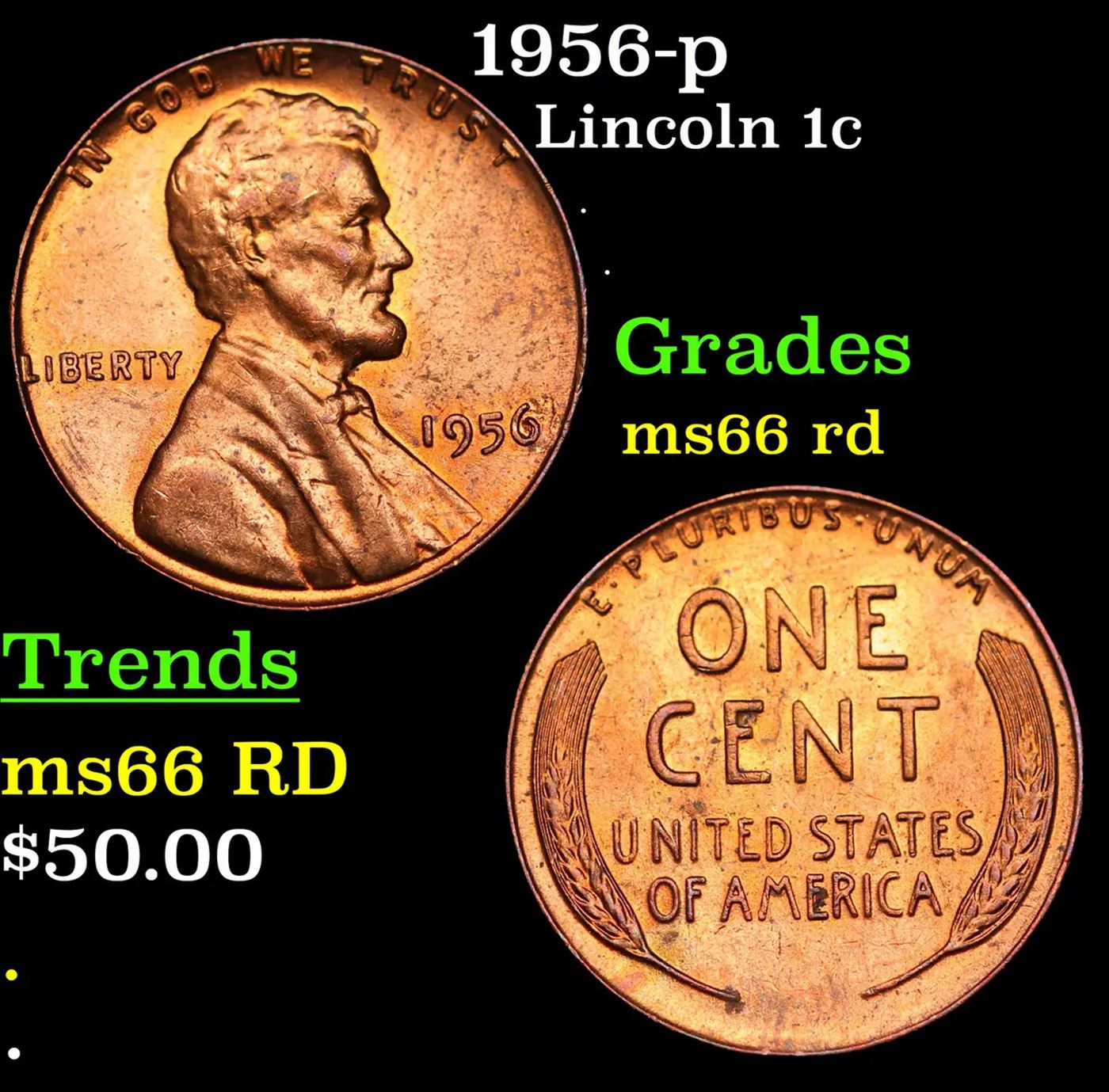 1956-p Lincoln Cent 1c Grades GEM+ Unc RD.