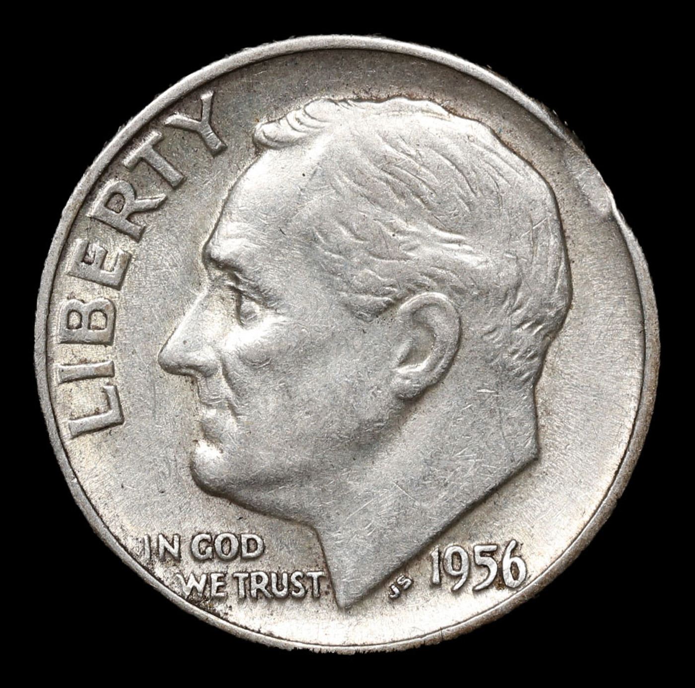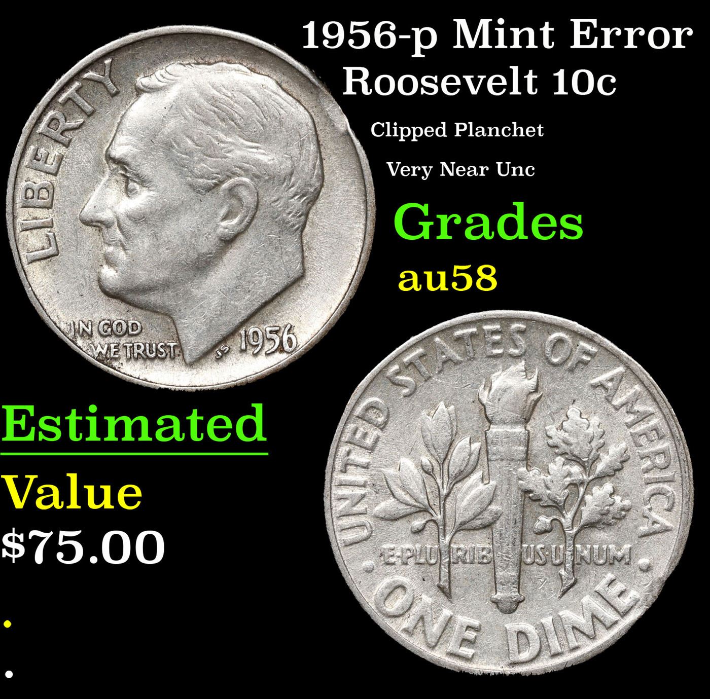 1956-p Mint Error Roosevelt Dime 10c Grades Choice AU/BU Slider.