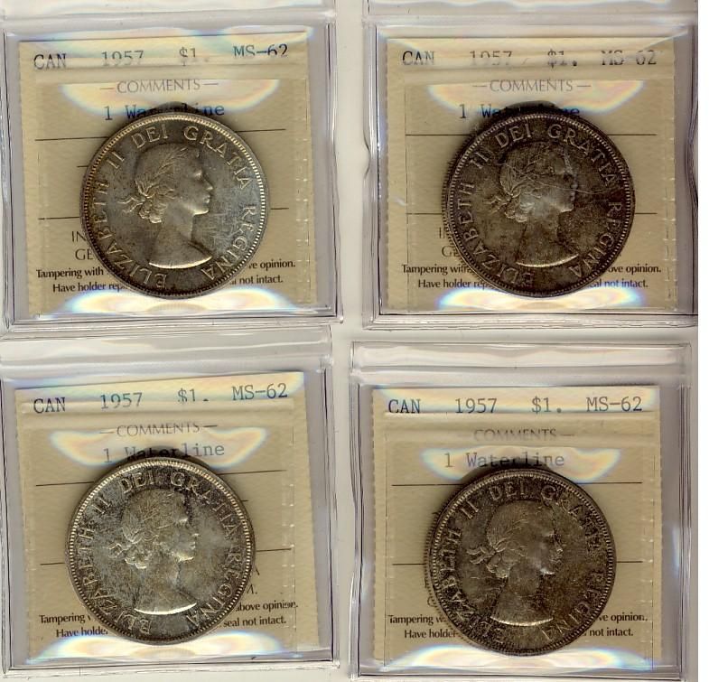 1957 $1 1 WL ICCS MS62.  Lot of 4 coins.