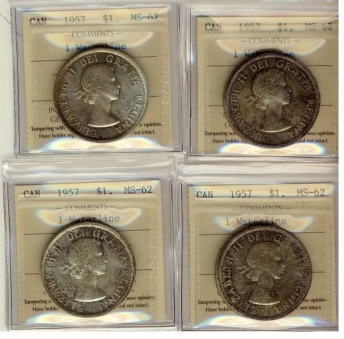 1957 $1 1 WL ICCS MS62. Lot of 4 coins.