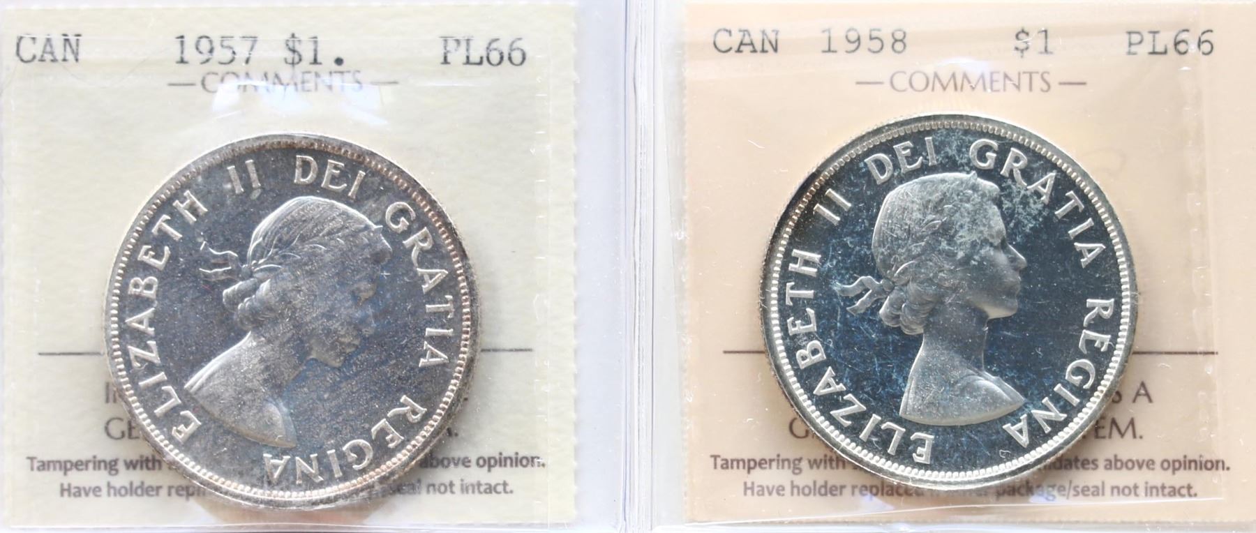 1957 $1, 1958 "Cameo". Both coins  ICCS Superb Gem Proof-Like-66