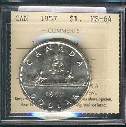1957 $1 1WL ICCS MS64. Light speckled tone.