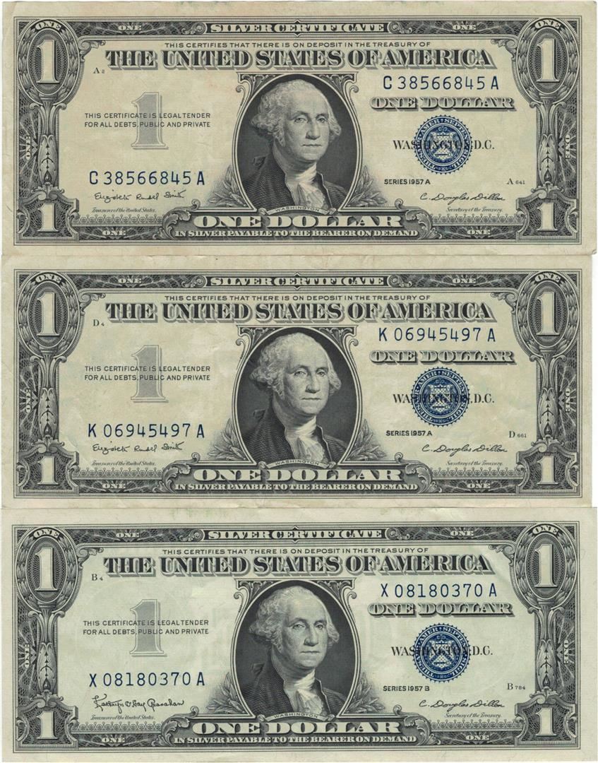One 1957 $1 AU/Unc Silver Certificate Currency Lot of 3.