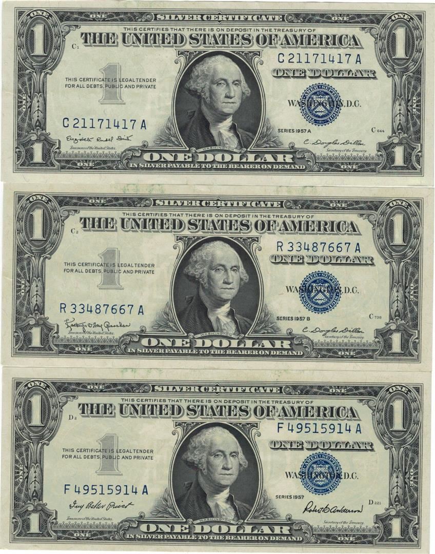 One 1957 $1 AU/Unc Silver Certificate Currency Lot of 3.