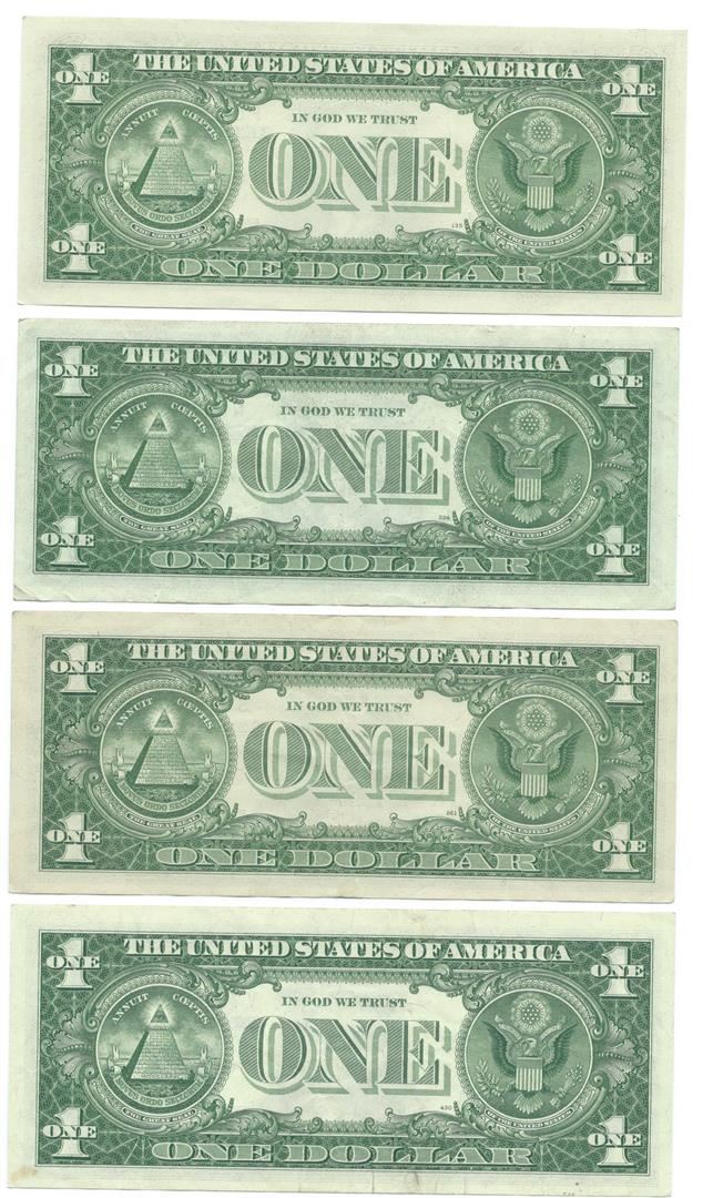 One 1957 $1 AU/Unc Silver Certificate Currency Lot of 4.
