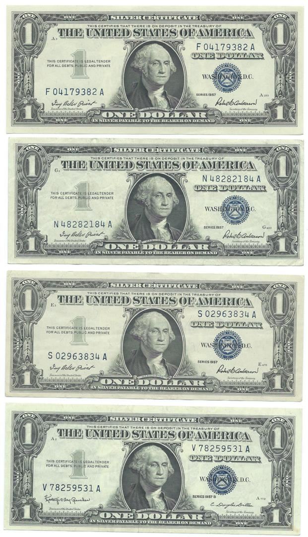 One 1957 $1 AU/Unc Silver Certificate Currency Lot of 4.