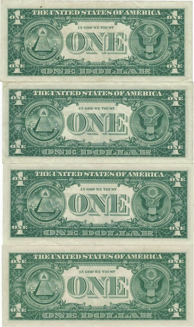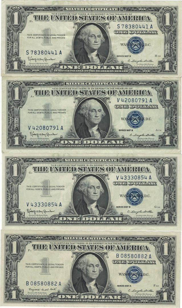 One 1957 $1 AU/Unc Silver Certificate Currency Lot of 4.