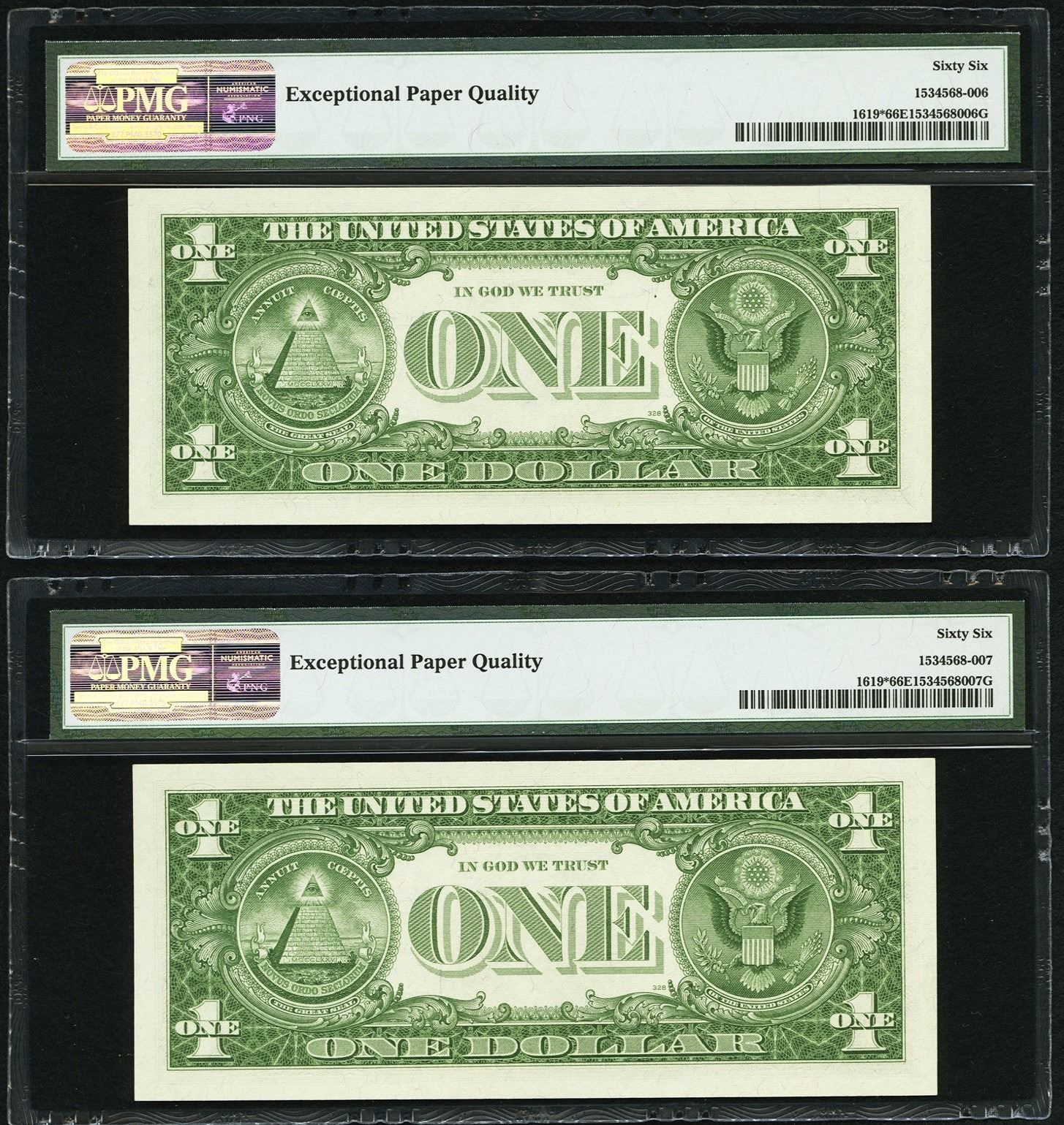 Lot of (2) 1957 $1 Consecutive Serial Silver Certificate STAR Notes PMG 66EPQ.