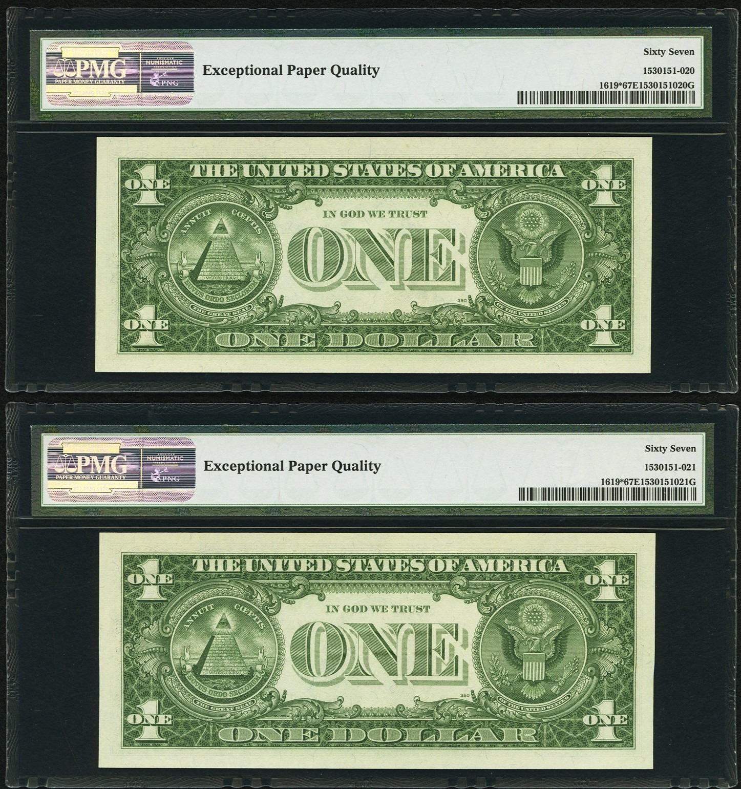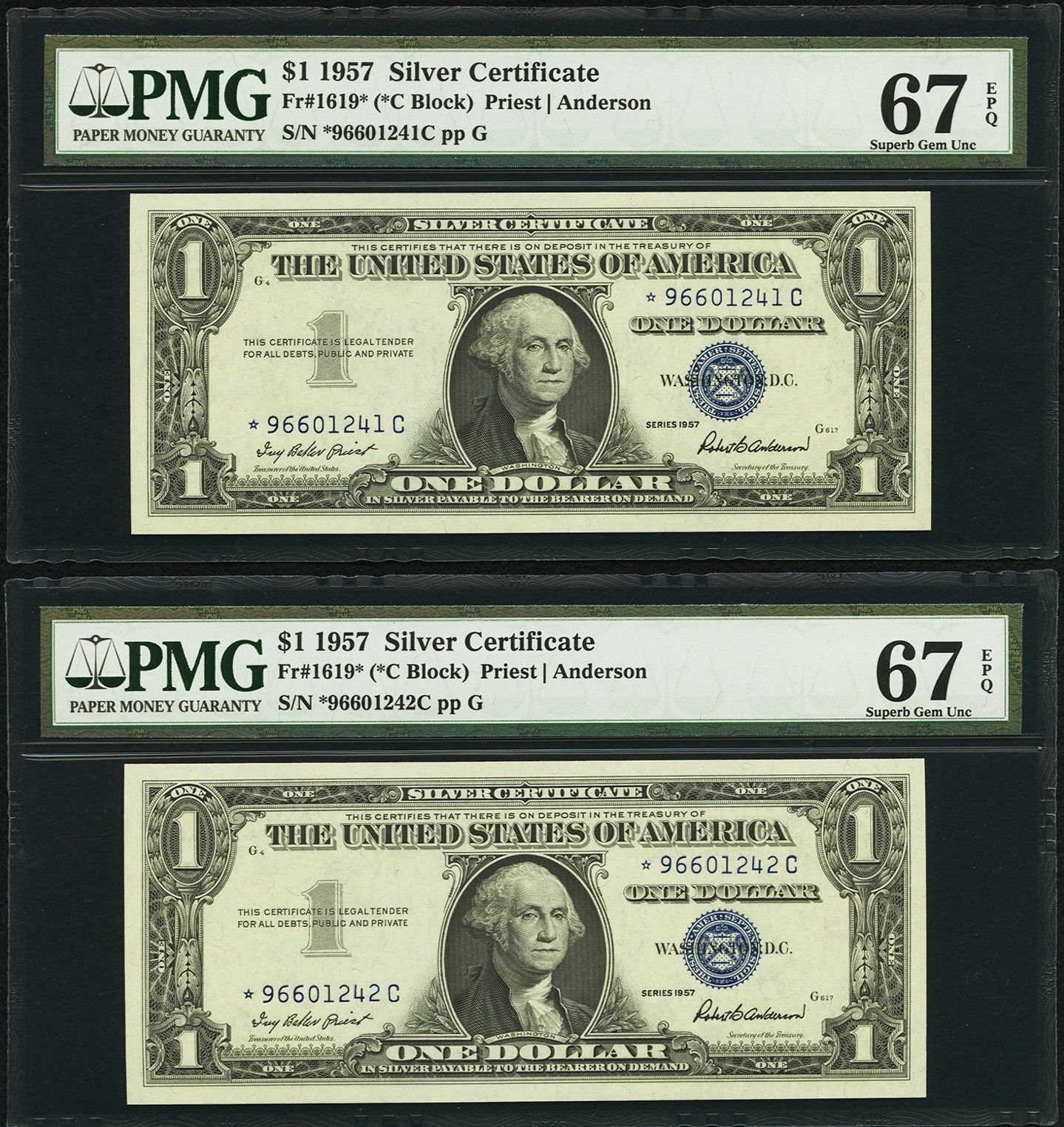 1957 $1 Consecutive Silver Certificate STAR Notes PMG 67EPQ.