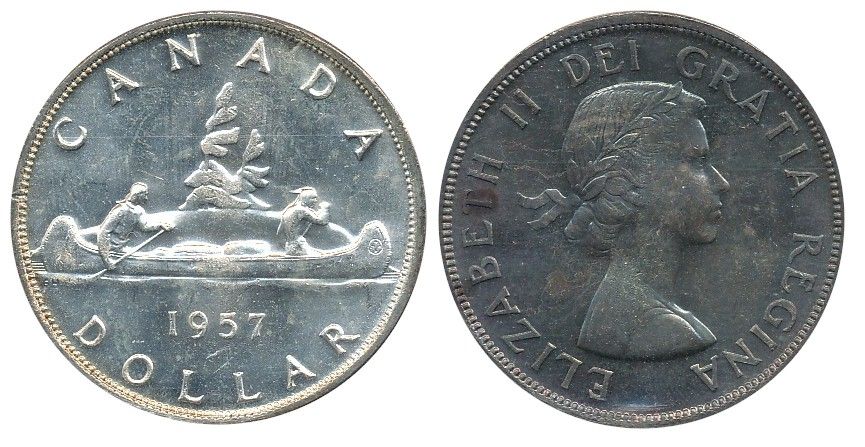 1957 $1 ICCS MS64. Strong tones under intense green and gold tones.