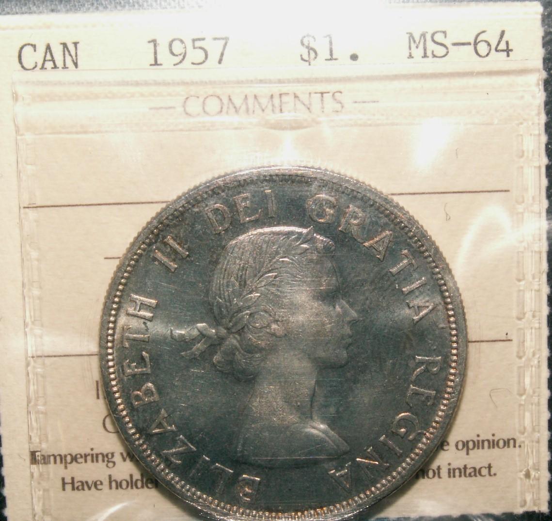 1957 $1 ICCS MS64. Tough to find in this grade. Affordable.