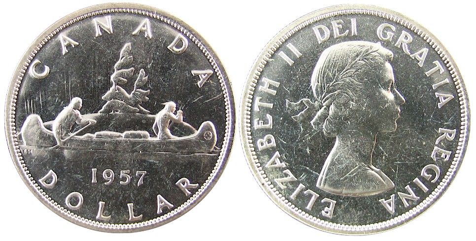 1957 $1 ICCS MS65 attractively toned on obverse. A very scarce date in Gem condition.