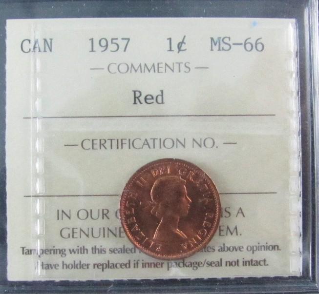 1957 1¢ ICCS MS66RD. Superb gem full red example.