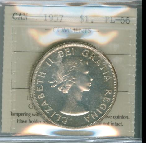 1957 $1 ICCS PL66. Attractive and brilliant.
