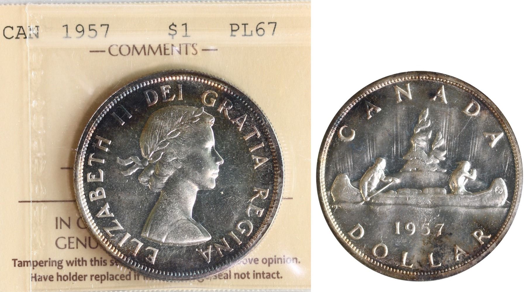 1957 $1 ICCS Superb Gem Proof-Like-67. Nice mirror fields with peripheral tones..