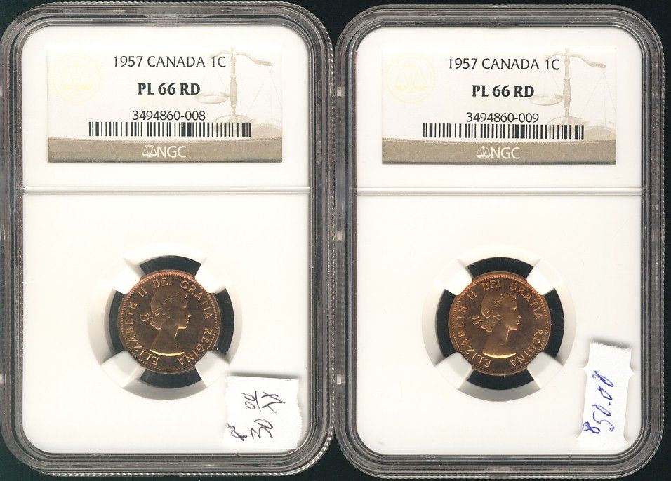 1957 1¢ NGC PL66RD. Lot of 2 coins.