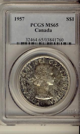 1957 $1 PCGS MS65. Gem lustre and scattered shades.
