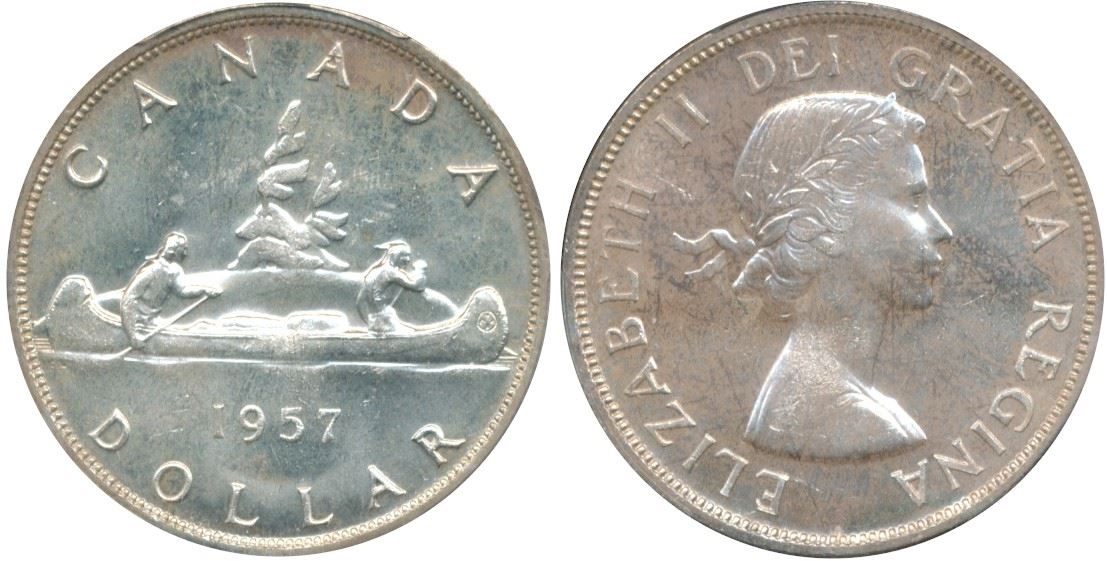 1957 $1 PCGS MS65. Tough issue for grade. Very scarce in gem condition.