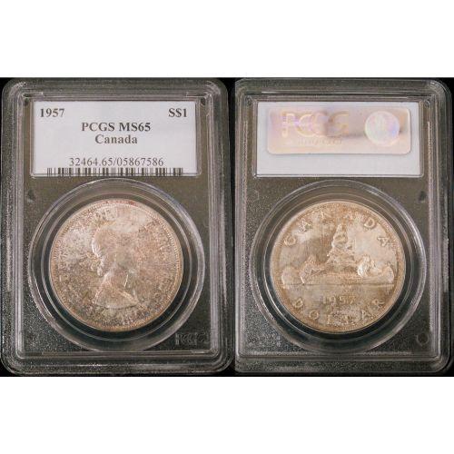1957 $1 PCGS MS65, nicely toned. Very rare in this condition. Scarce date