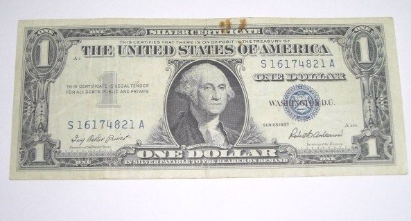 1957 $1 SILVER CERTIFICATE U.S. BILL SERIAL # S16174821A *NICE BILL PLEASE LOOK AT PICTURE TO DETERMINE GRADE*!! ***Coin, Currency & All Items Listed in this auction - Grades, Conditions and Values are not Safe Deposit Coins LLC Responsibilty. Grades, Condition and Values are determined by Consigner(s) & Buyers ONLY