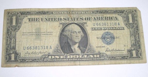 1957 $1 SILVER CERTIFICATE U.S. BILL SERIAL # U66381318A *NICE BILL PLEASE LOOK AT PICTURE TO DETERMINE GRADE*!! ***Coin, Currency & All Items Listed in this auction - Grades, Conditions and Values are not Safe Deposit Coins LLC Responsibilty. Grades, Condition and Values are determined by Consigner(s) & Buyers ONLY