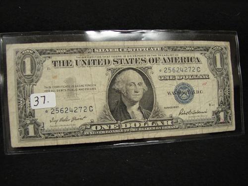 1957 U.S. $1 SILVER CERTIFICATE. Blue seal.