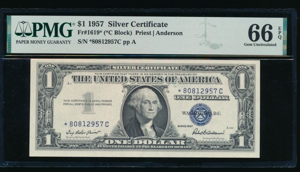 One 1957 $1 STAR Silver Certificate PMG 66EPQ.