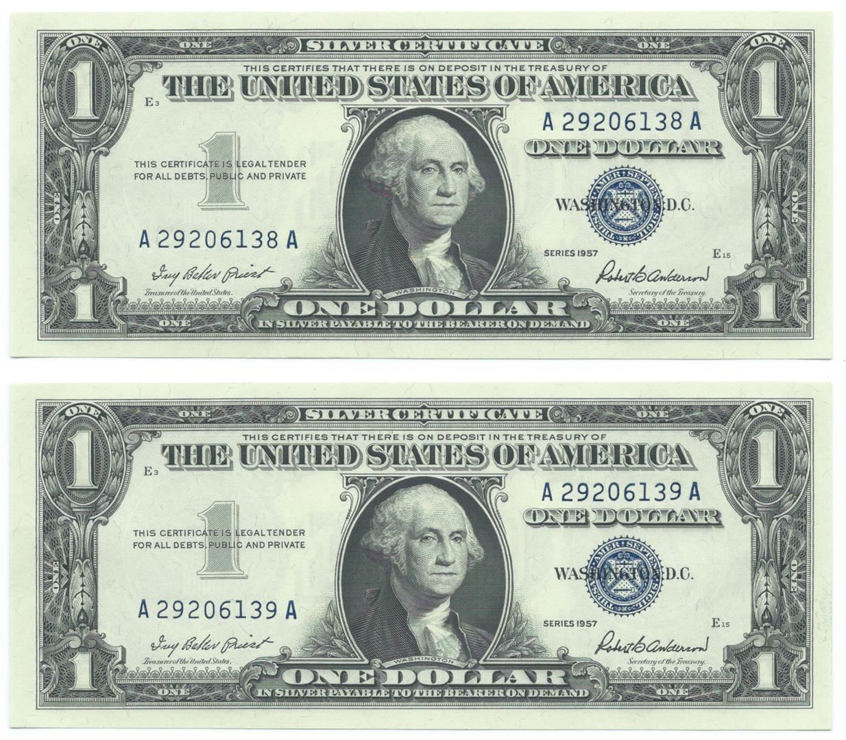 One 1957 $1 Silver Certificate Currency Lot of 2.