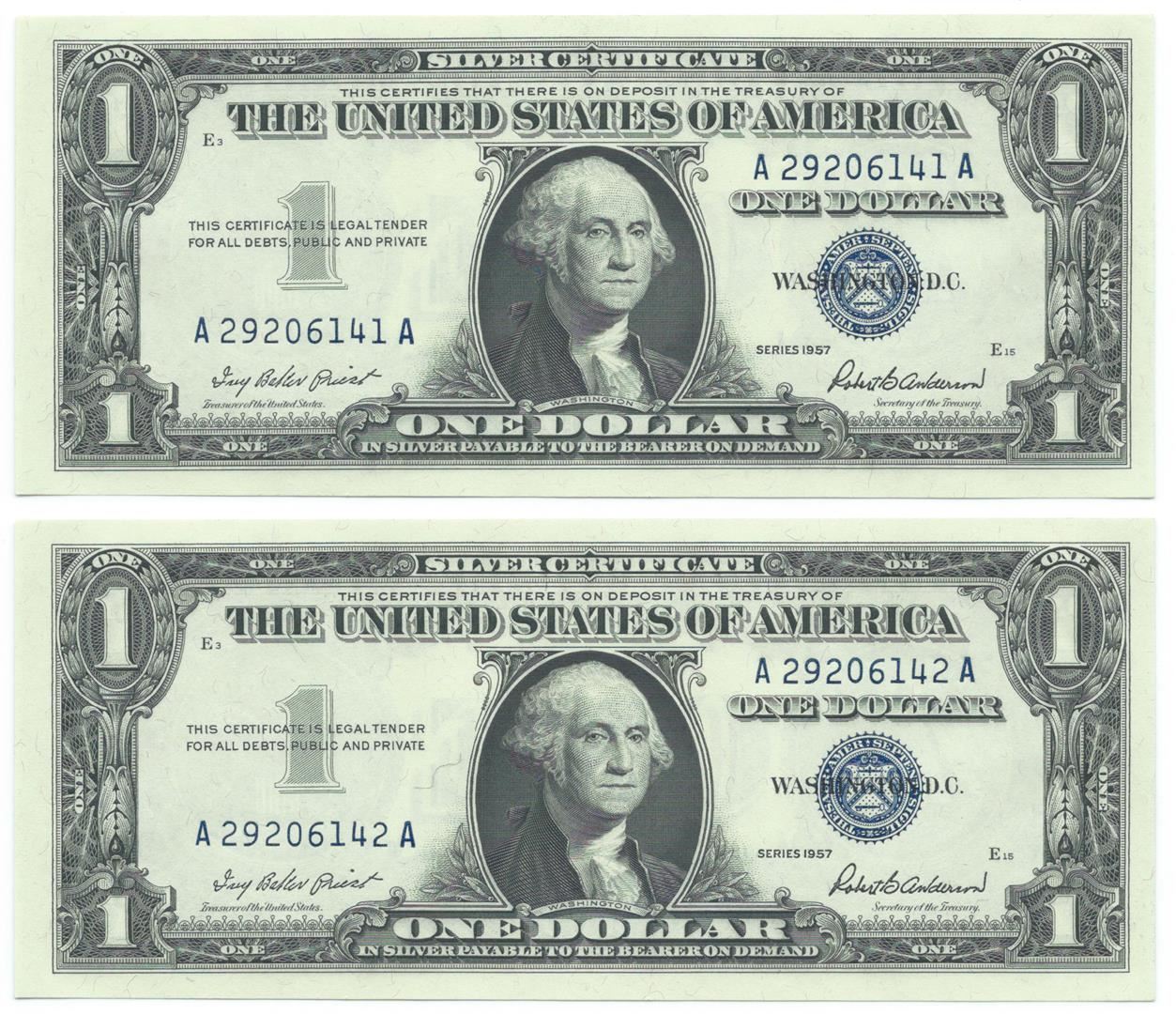One 1957 $1 Silver Certificate Currency Lot of 2.