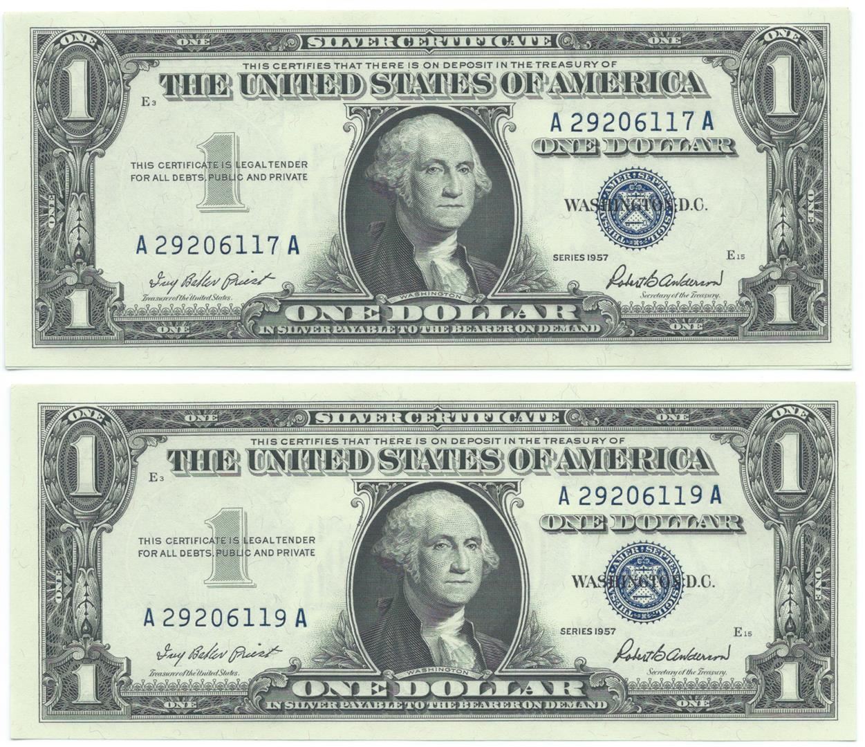One 1957 $1 Silver Certificate Currency Lot of 2.