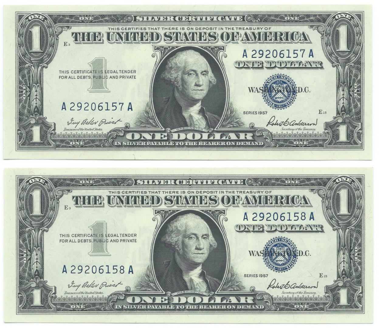 One 1957 $1 Silver Certificate Currency Lot of 2.
