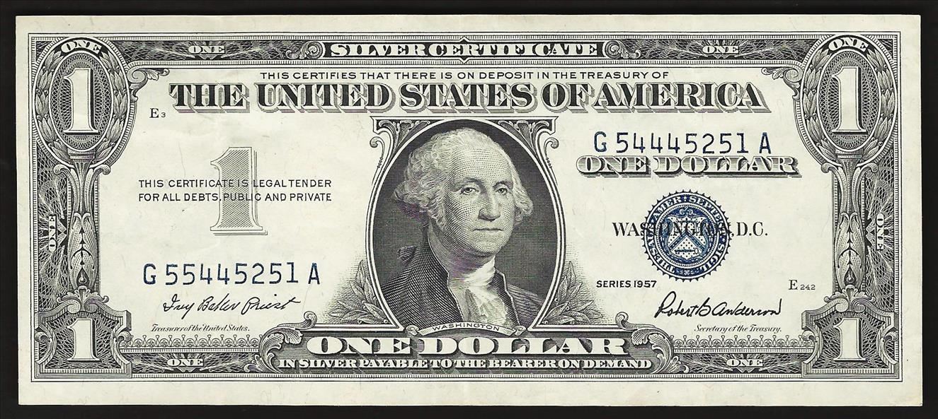 One 1957 $1 Silver Certificate Note ERROR Mismatching Serial.