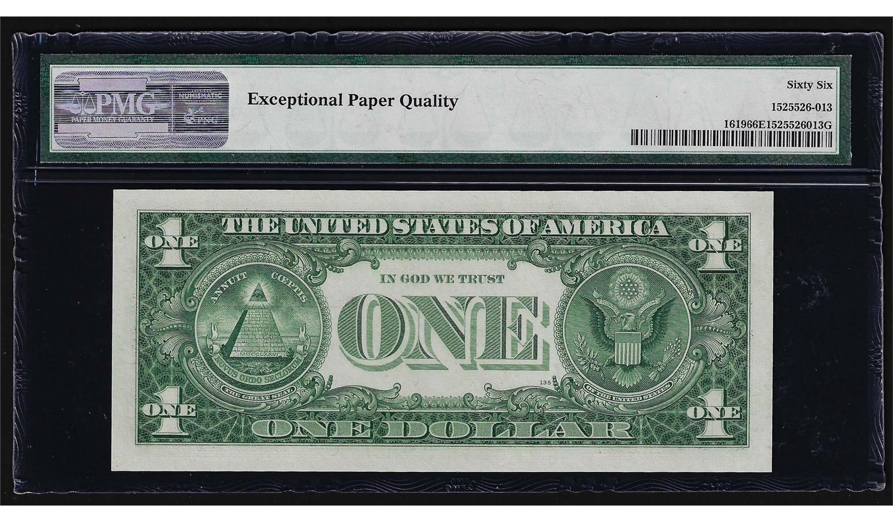One 1957 $1 Silver Certificate Note Fr. 1619 PMG Gem Uncirculated 66EPQ. PMG Certified.