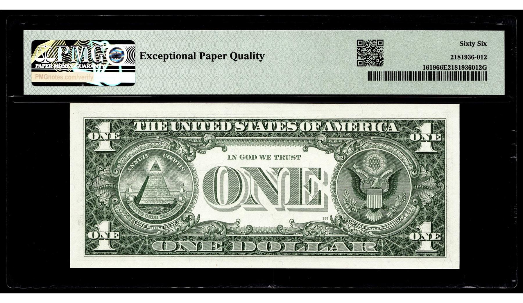 1957 $1 Silver Certificate Note Fr.1619 PMG Superb Gem Uncirculated 66EPQ Low Serial
