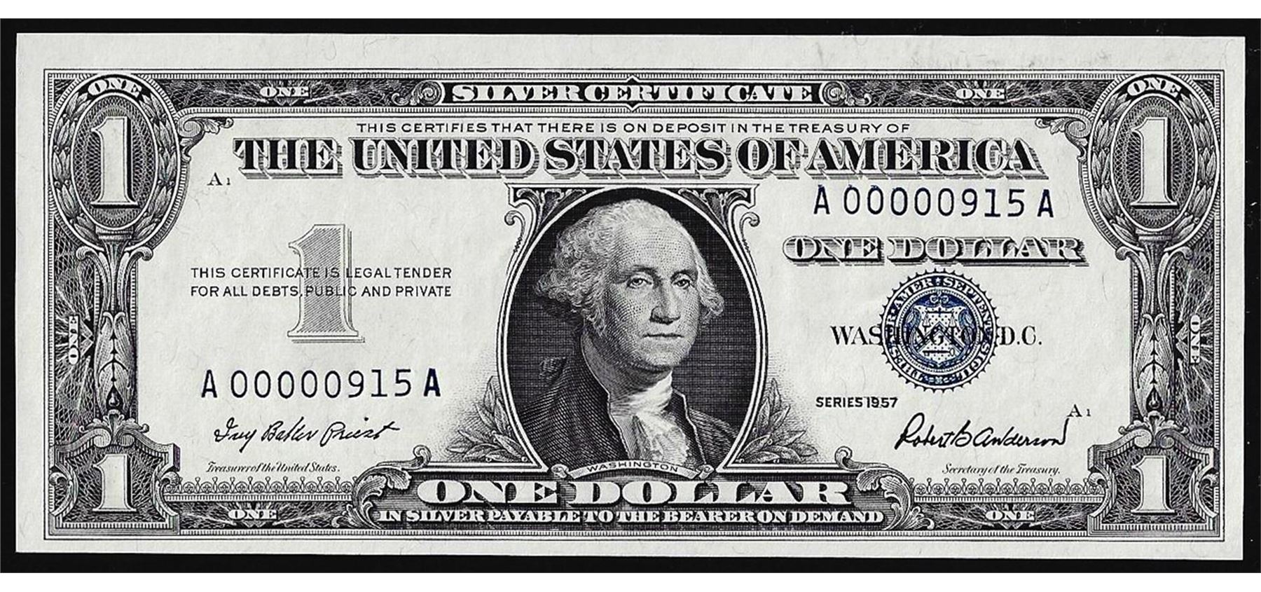 One 1957 $1 Silver Certificate Note Low Serial 3 Digit Number.