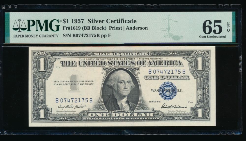 One 1957 $1 Silver Certificate PMG 65EPQ.