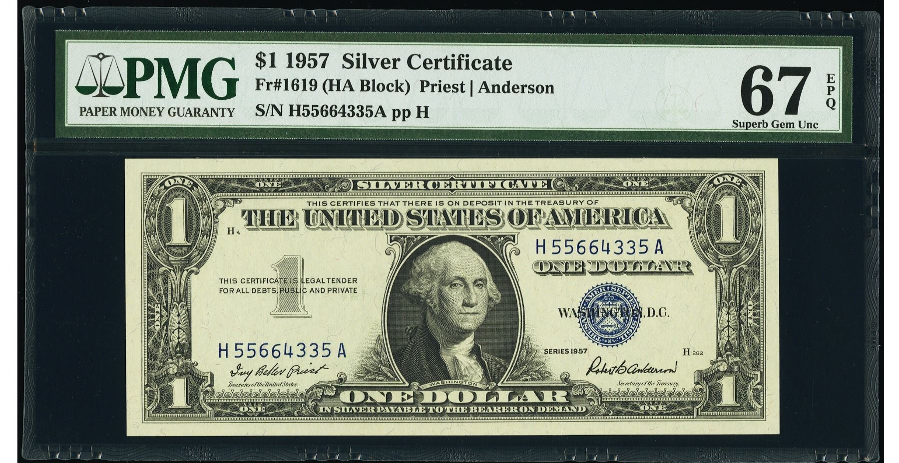 One 1957 $1 Silver Certificate PMG 67EPQ.
