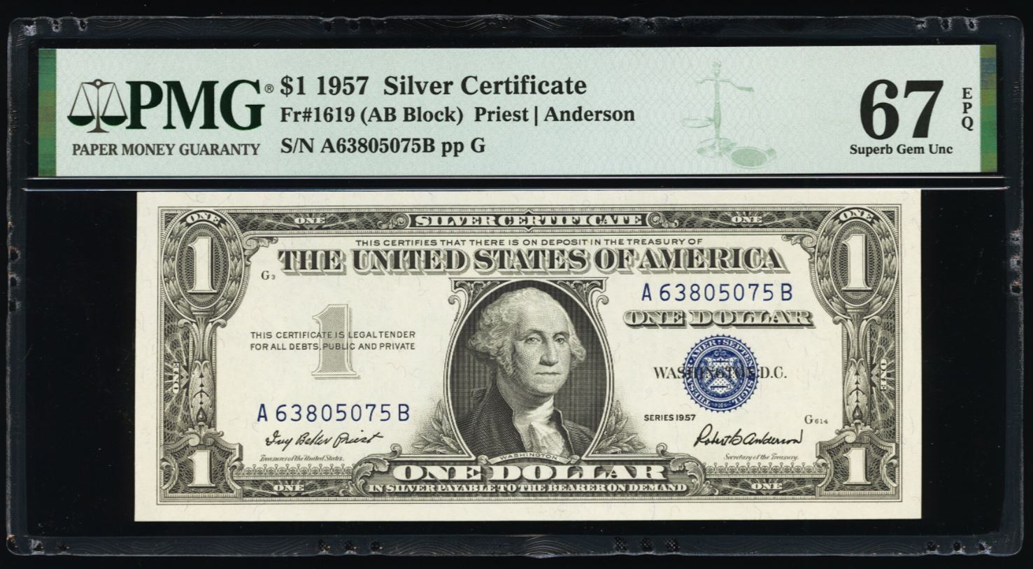 One 1957 $1 Silver Certificate PMG 67EPQ.