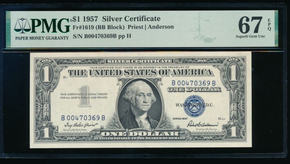 One 1957 $1 Silver Certificate PMG 67EPQ.