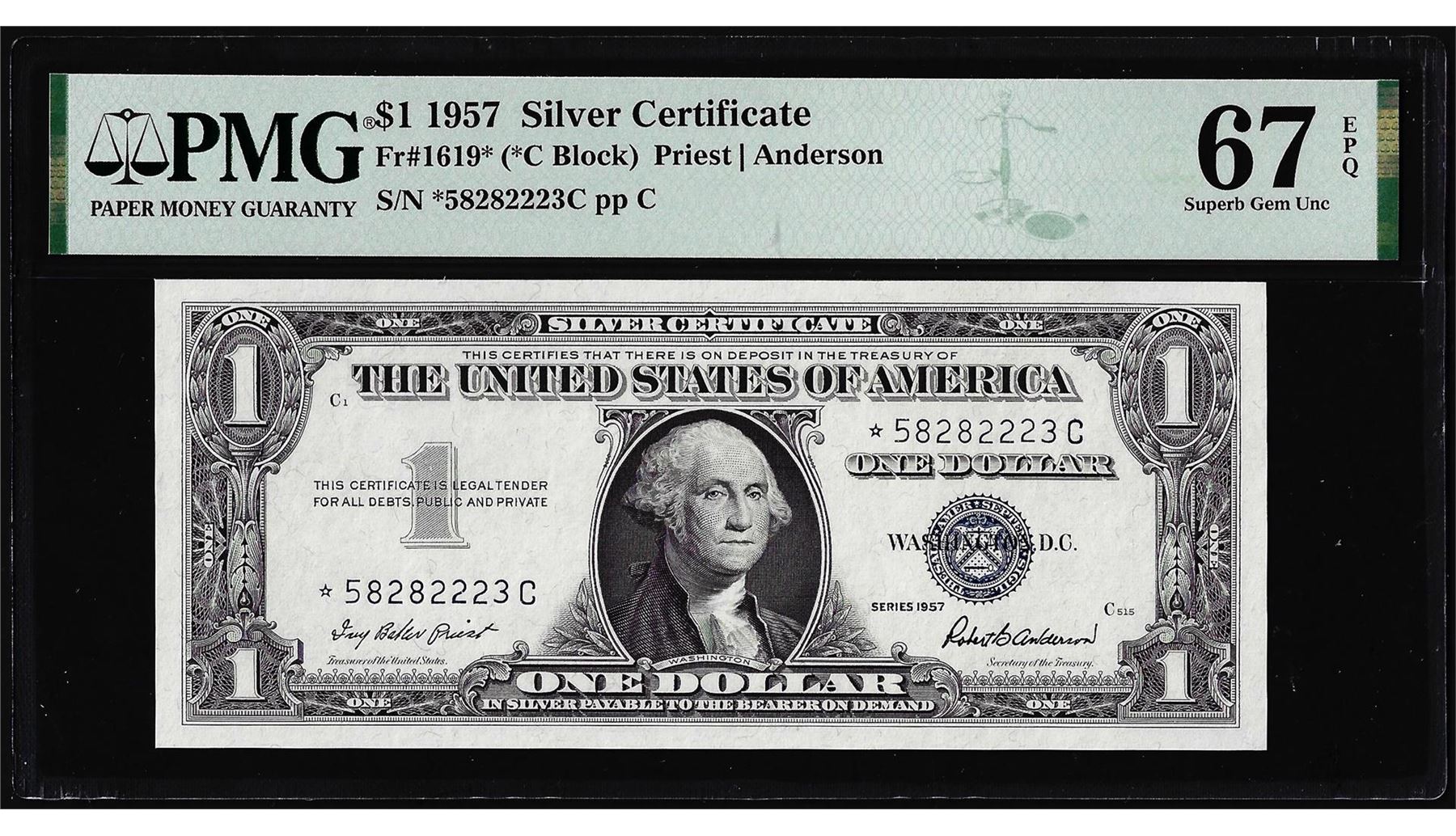 1957 $1 Silver Certificate STAR Note Fr.1619* PMG Superb Gem Uncirculated 67EPQ