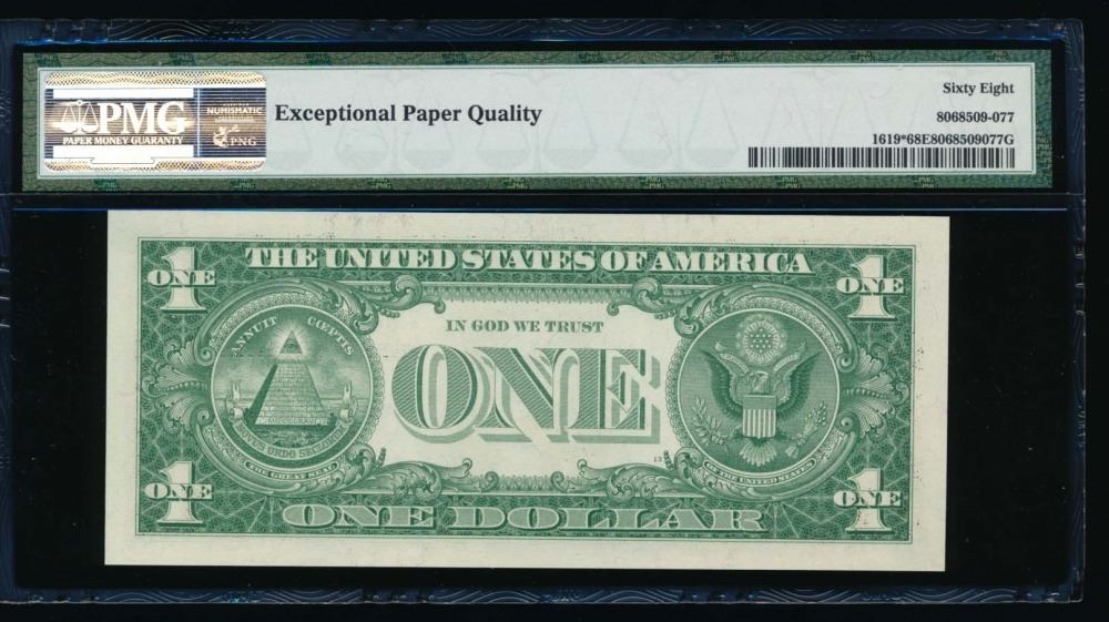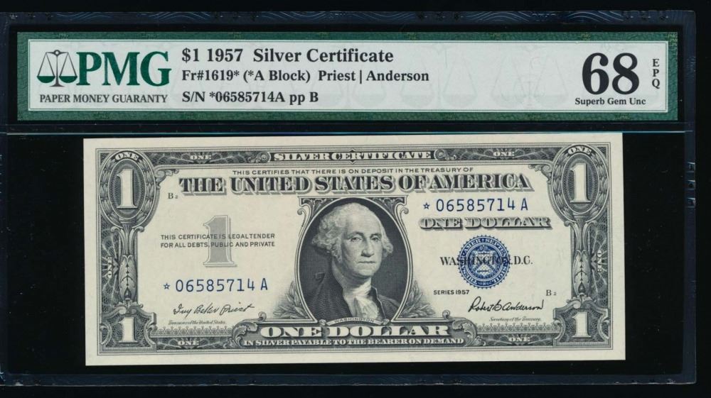 One 1957 $1 Silver Certificate STAR Note PMG 68EPQ.