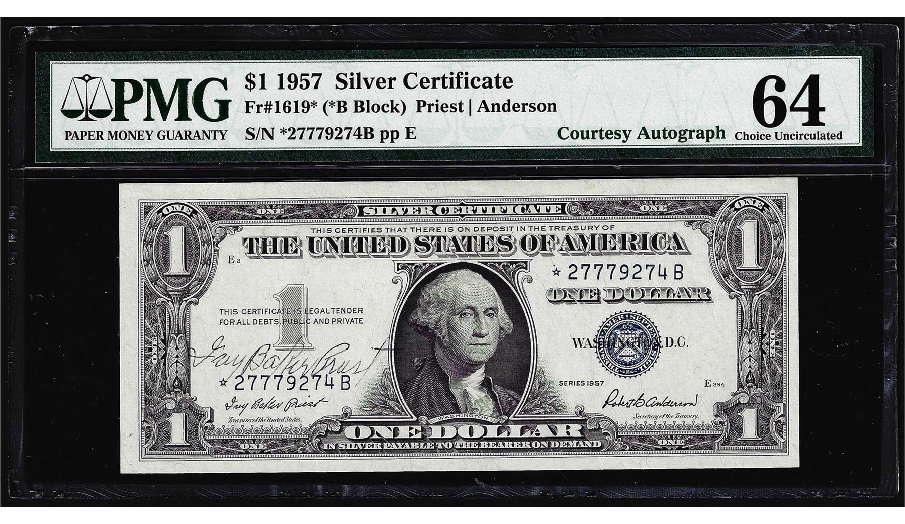 1957 $1 Silver Certificate STAR Note PMG Choice Uncirculated 64EPQ Courtesy Autograph